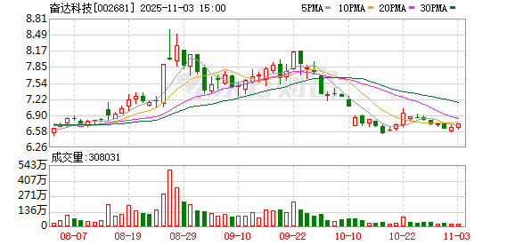 11月3日,奋达科技(002681)截至2025年10月31日已回购322万股,占总股本的0.18%,回购价格区间为6.53元/股至7.78元/股,支付总金额为2223万元。